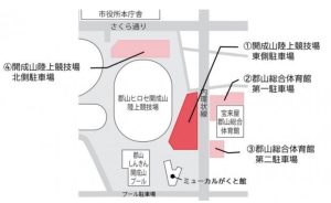 郡山市がくと館:内環状線沿いにあります2時間無料の駐車場をご利用ください。※開成山プールの駐車場はご利用不可です。ご注意ください^^